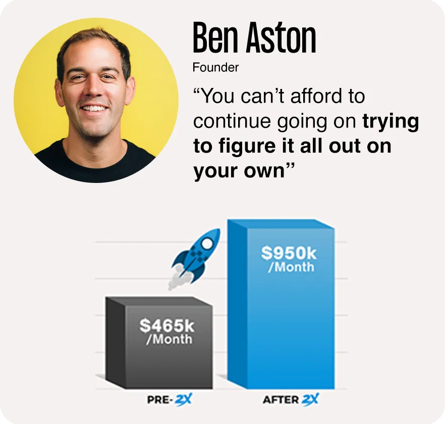Disclaimer: Fast growth and big success are not easy. We help entrepreneurs 1-on-1 to implement strategies based on our experience and expertise. Each business is different, which means that every situation is different, and your results will vary.